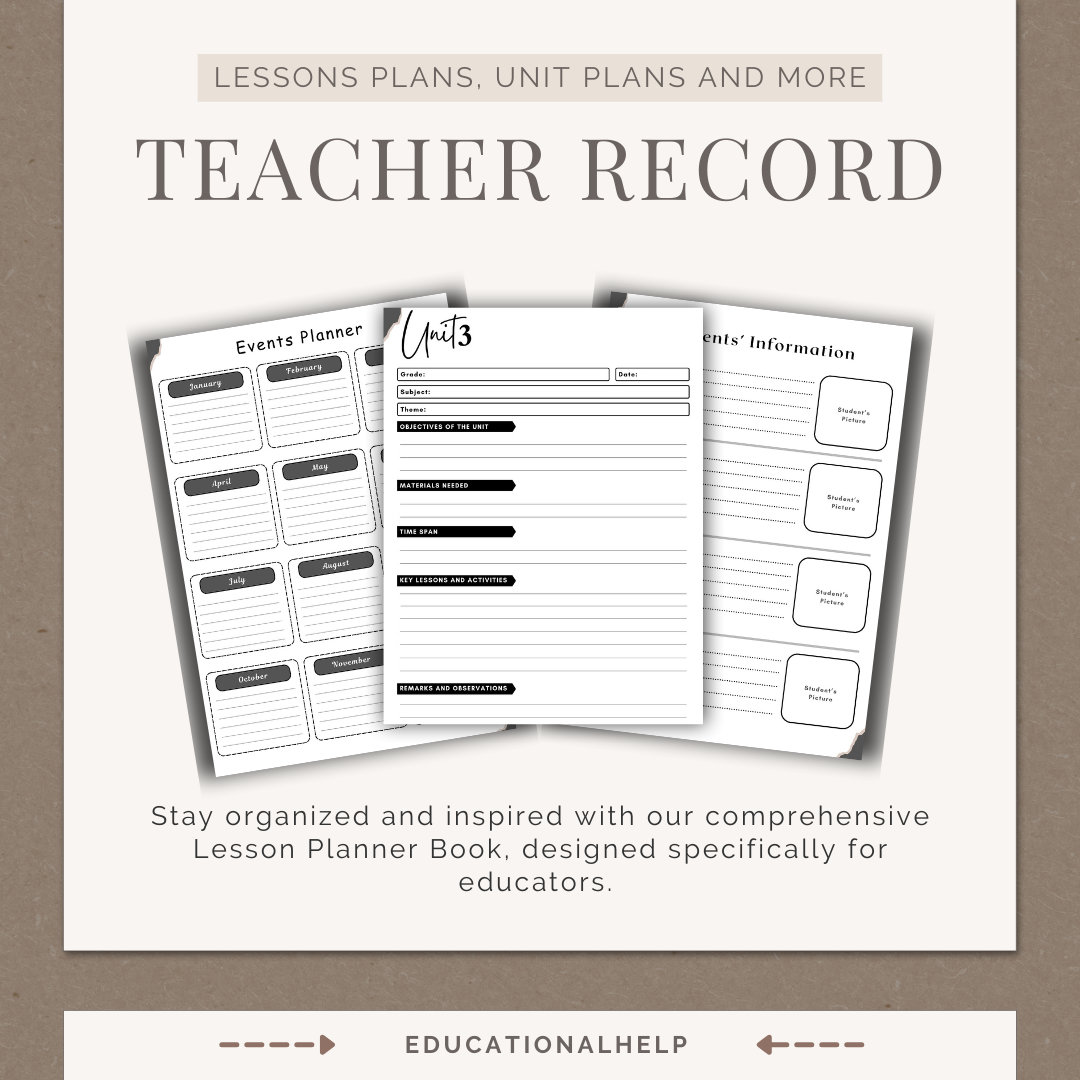Stay organized and inspired with our comprehensive Lesson Planner Book, designed specifically for educators. This planner is your all-in-one tool for effective classroom management and planning. It includes: