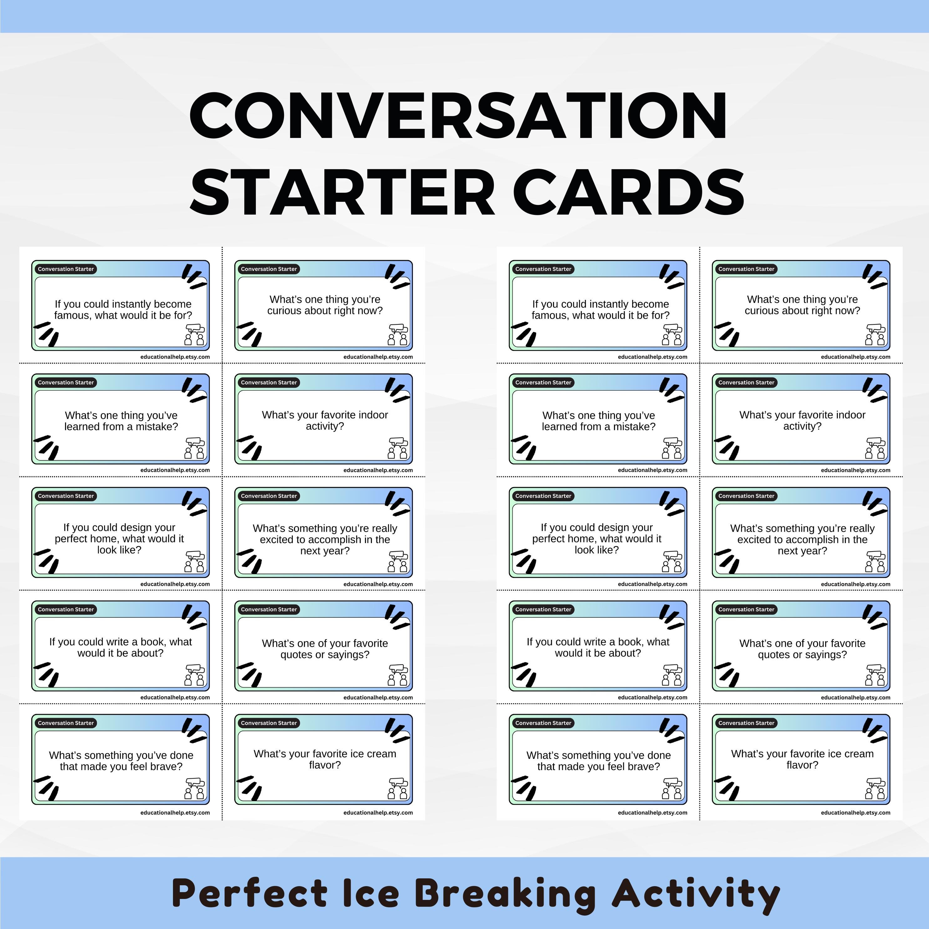 🎉 Perfect for Classrooms, Groups, or Events! These cards are a fantastic tool for teachers to use in any setting where students need a little push to open up. Whether it's the first day of school, a group project, or just a fun break in the day, these conversation starters will get everyone chatting in no time.