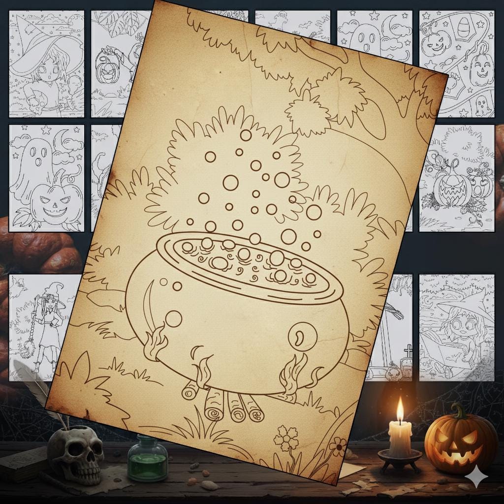 Halloween Coloring Book with pages featuring ghosts, zombies, vampires, and more. You also get