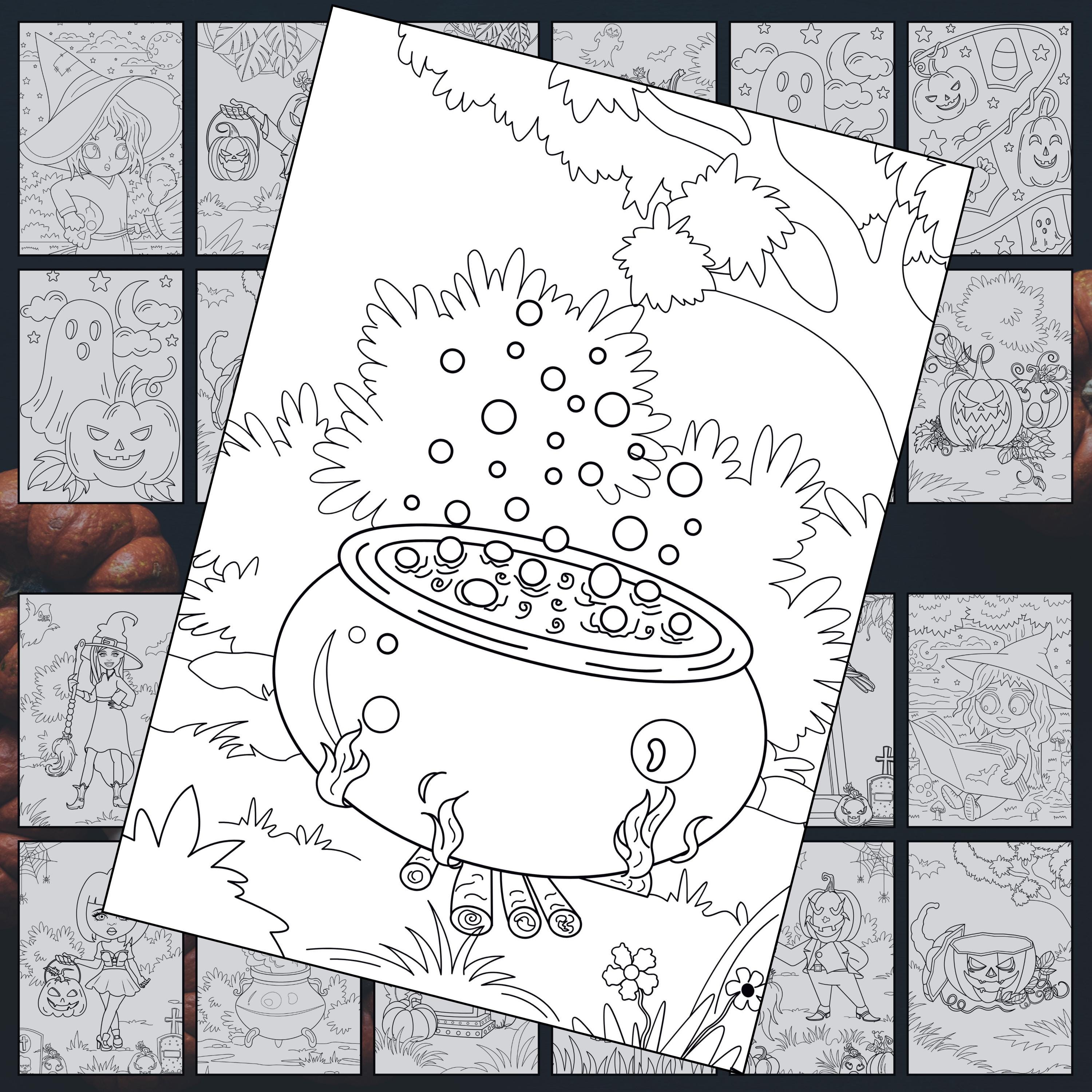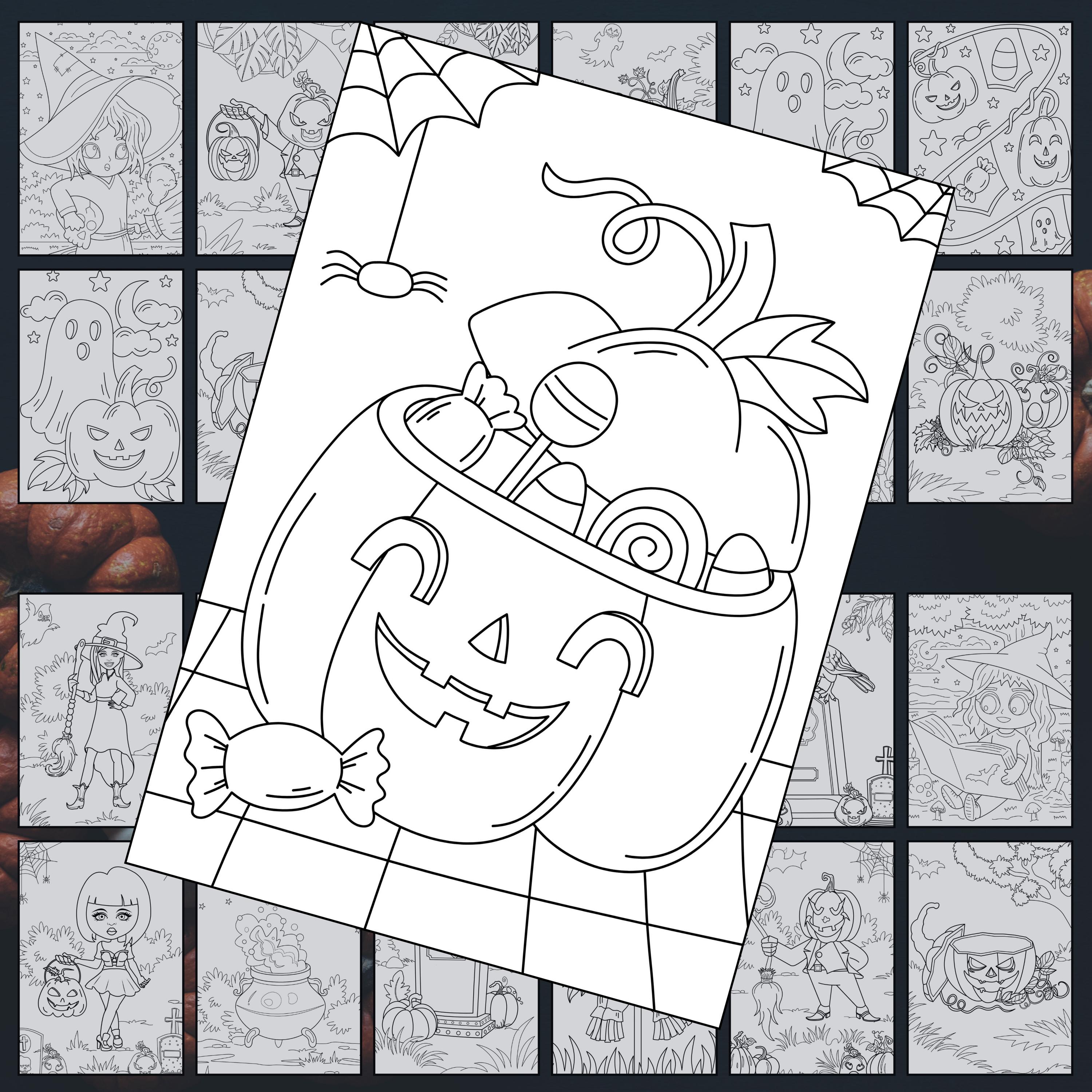 Halloween Coloring Book with pages featuring ghosts, zombies, vampires, and more. You also get